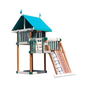 Your child’s playtime fun will skyrocket with the Summit Escape Swing Set. A gangplank leads to a tower with a steering wheel and a super scope. A combo climb provides two ways to climb. Two deluxe wave slides double the fun. Several swing styles are also included – three sling swings, a trapeze swing, and a Tire Swing. Add this playset to your backyard, and many joy-filled memories are sure to be in your future!